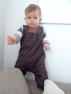 This was Jonas' trolley from when he was small. We had to put in the heaviest book we have so she doesn't fall back and Jonas pimped it up with a bicycle bell that she now knows how to ring! She's the BEST! Look at her go!