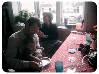 We had two parties. One on Saturday and one on Sunday. On both we have lots of lovely friends and family, we had a very nice time, ate cake and opened presents. We said that since Olivia already had everything she needed we would like people to give her a little something for an 18 year old girl instead, then we would pack everything and give her today on her 18th birthday. It was so much fun! People got very creative and got her all kinds of funny and very cool things! She got magazines from these days, very nice books, a New York map, a hammer and a level (it is around this age that kids move into their first apartments), fun jewelry and accessories, a bottle of wine, an olive tree (that we promise to try to keep alive for the next 17 years), anyways, everything was so nice and I can't wait to see what she thinks when she grows up. We are going to pack it all again with the newspaper from the 16th of April. Anyways, it couldn't have gone better. Homemade cake, homemade food, lovely company and a happy baby.